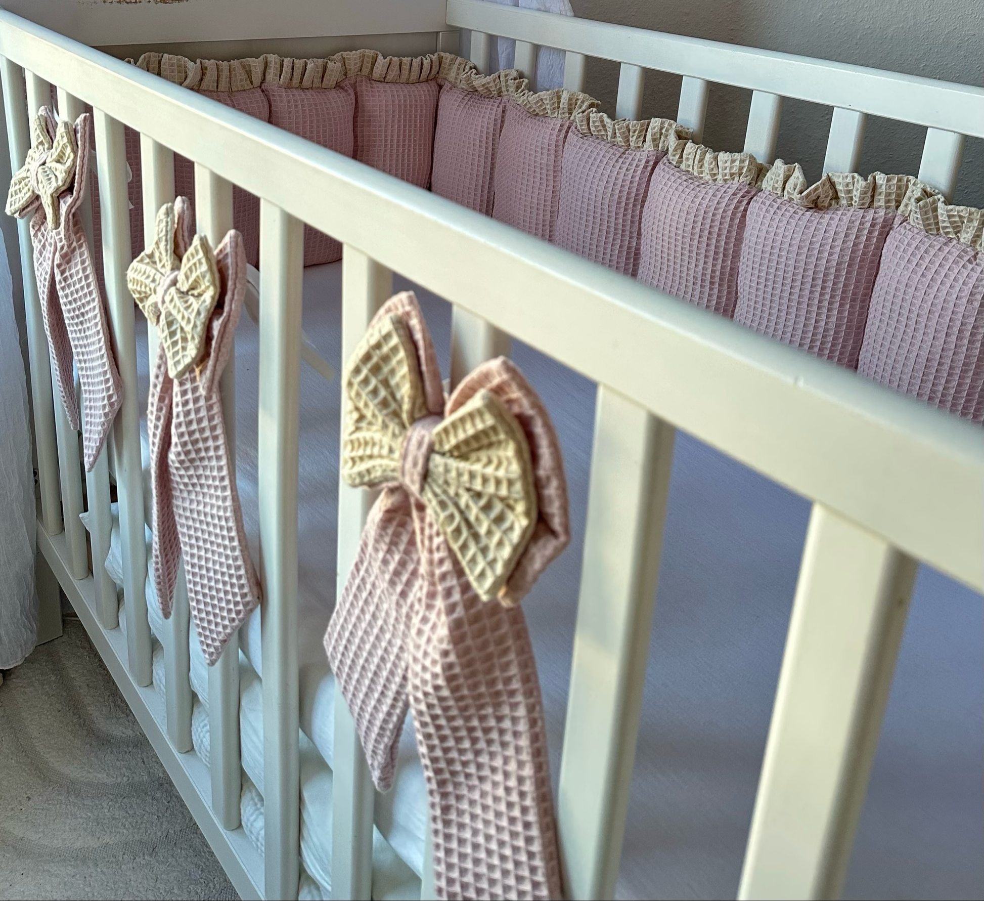Unsere handgemachte Dekoschleife aus edlem Velvet ist das perfekte Accessoire für ein liebevoll gestaltetes Kinderzimmer. Ob am Babybett, an Vorhängen oder an der Wand – sie verleiht jedem Raum eine warmherzige, stilvolle Atmosphäre.